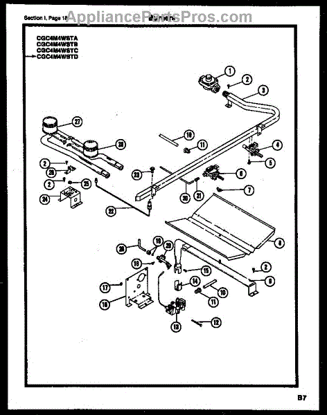Parts for Frigidaire CGC4M4WSTA: 13 - Burners Parts