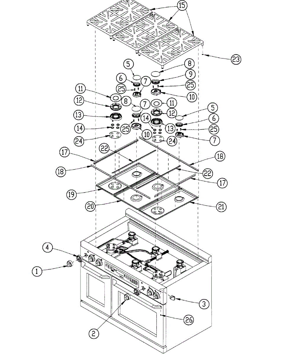 Seals the dual burner assembly to the cooktop surface, preventing spills and ensuring proper support. Replace when worn to restore a snug fit and reliable burner operation. Verify fit with your model number.