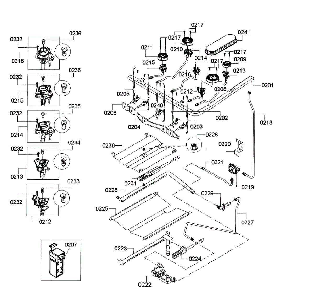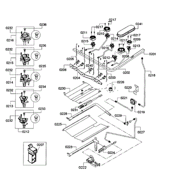The Nozzle Set is an OEM replacement part for Bosch LP gas ranges. It consists of precision-calibrated nozzles that regulate fuel flow to the burners, ensuring proper flame size and heat output. Accurate nozzle sizing is vital for safe, reliable cooking operations.
