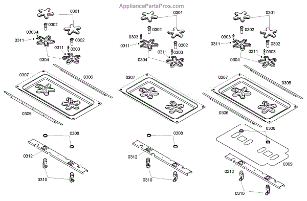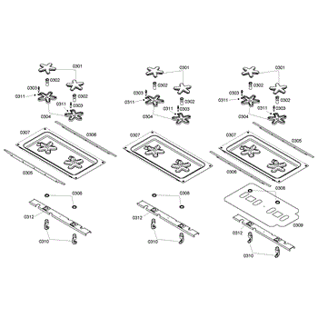 Parts for Thermador PRD366EHC/04: Burners Assy Parts