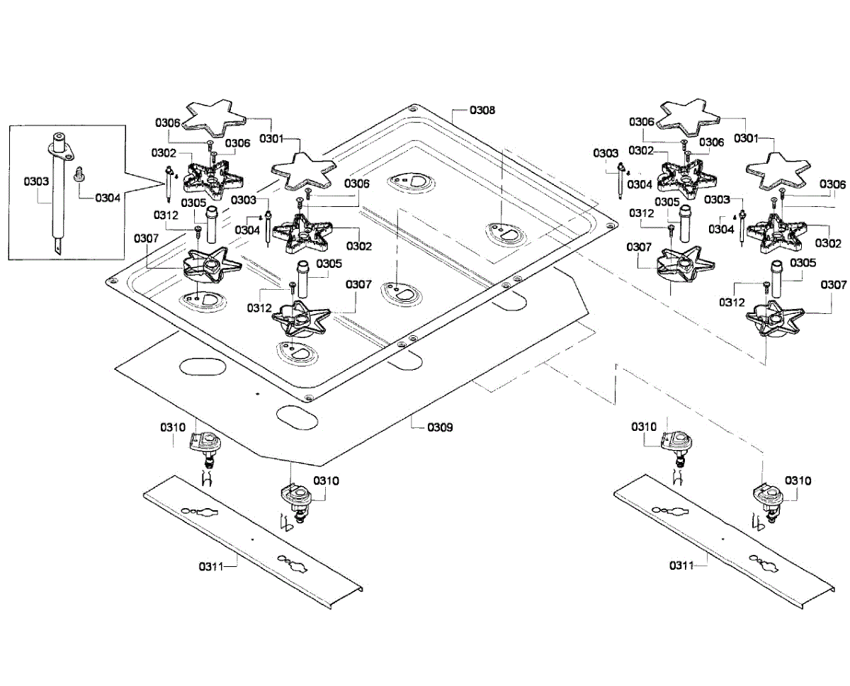 This hob top is the replacement top panel that covers the cooking surface and supports burners and controls, restoring the cooktop's appearance and protecting internal components. It fits specific Bosch cooktop assemblies. What it does: