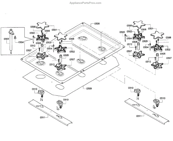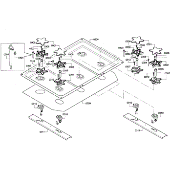 Parts for Thermador PRD366GHC/05: Burners Assy Parts