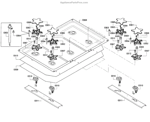 Parts for Thermador PRD366GHC/09: Burners Assy Parts