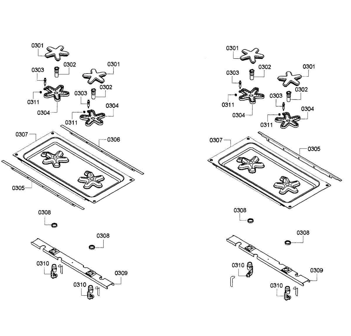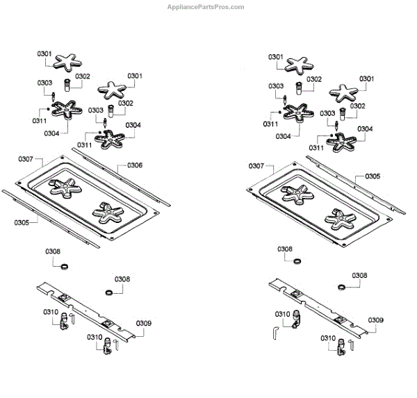 The Surface Burner Holder is an OEM part for Bosch ranges and cooktops. It serves to securely mount and support both the surface burner assembly and gas orifices in place on the cooktop.