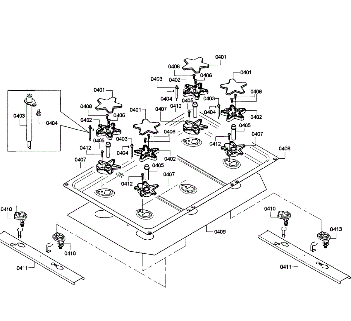 This hob top is the replacement top panel that covers the cooking surface and supports burners and controls, restoring the cooktop's appearance and protecting internal components. It fits specific Bosch cooktop assemblies. What it does: