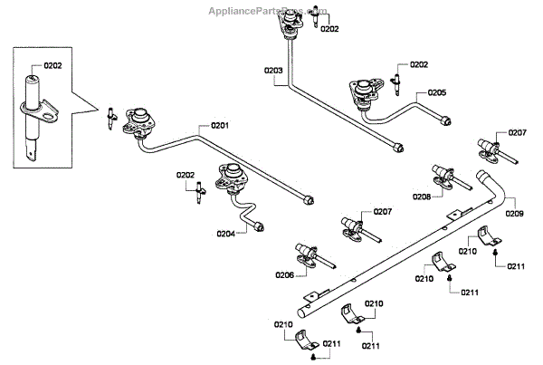The Orifice Holder Assembly is an OEM part for Bosch gas ranges. It securely holds the orifice which regulate gas flow to each burner, allowing flame levels to be finely tuned during cooking.