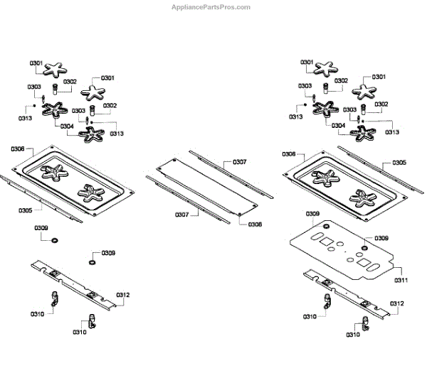 Parts for Thermador PRD304EG/05: Burners Parts