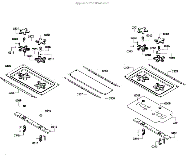 Parts for Thermador PRD304EG/08: Burners Parts
