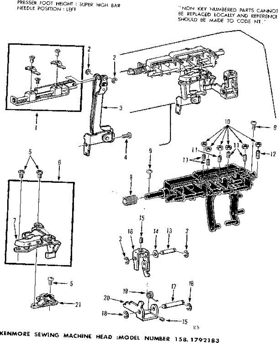 Parts for Kenmore 158.1792183 (1581792183, 158 1792183): Buttonhole Control Assembly Parts