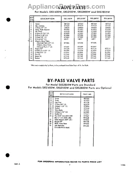 Parts for Whirlpool SXS2800W: 07 - Bypass Valve Parts