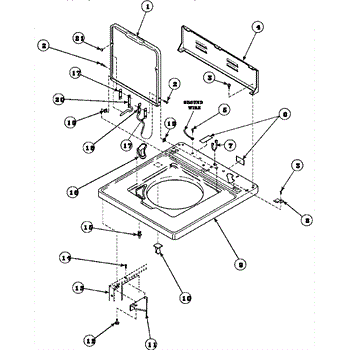 Parts for Amana LW9203L2-PLW9203L2A: Cab Top / Loading Dr & Ctrl Hood Rear Pan Parts