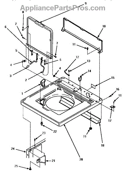Parts for Amana LWM423L-P1176404WL: Cab Top / Loading Dr & Ctrl Hood Rear Pan Parts