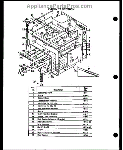 Parts for Caloric ESS306-2D: Cabiner Section Parts