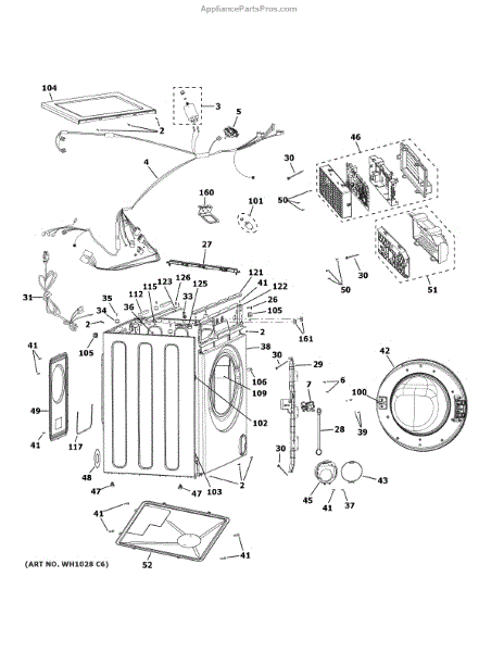 The Door Assembly is an OEM part for GE washers. It is the complete unit that covers the opening of the washer tub, including both the inner and outer doors. The door assembly allows for convenient loading and unloading of laundry items while maintaining a security seal during operation.