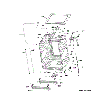 The TOP PANEL is an OEM part for GE washers. It is the exposed plastic surface located at the very top of the unit. The top panel plays an important aesthetic role by providing the finishing surface above the loading door opening.