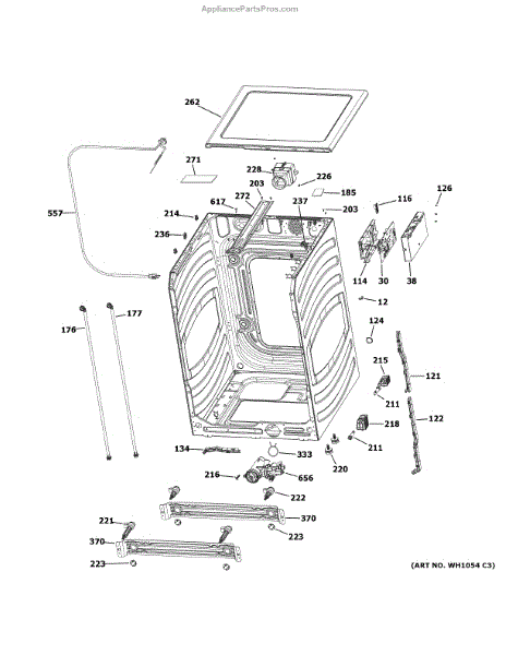 The TOP PANEL is an OEM part for GE washers. It is the exposed plastic surface located at the very top of the unit. The top panel plays an important aesthetic role by providing the finishing surface above the loading door opening.