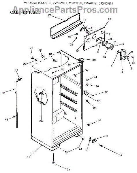 Parts for Kenmore 253.9629181 (2539629181, 253 9629181): Cabinet Parts