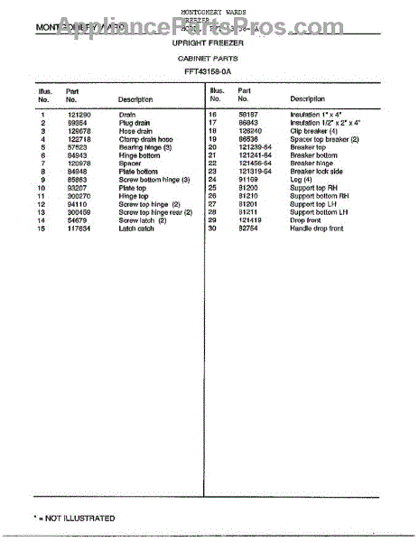 Parts for Frigidaire 43158-OA: Cabinet Parts