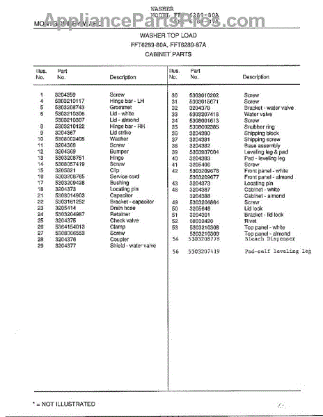 Parts for Frigidaire 6289-87A: Cabinet Parts