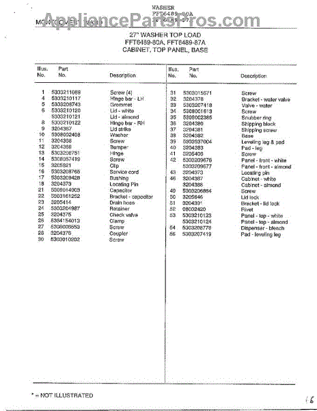 This rubber lid bumper cushions the washer lid to prevent hard contact and reduce noise and wear. It replaces a worn or missing bumper to help the lid close more softly and sit level. What it does: