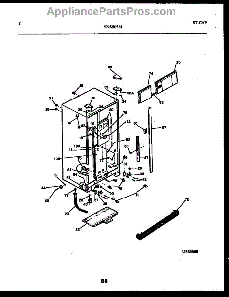 This factory fastener secures appliance panels and components. Replace a missing, stripped, or corroded screw to restore a tight, rattle-free fit and keep brackets and covers properly aligned.