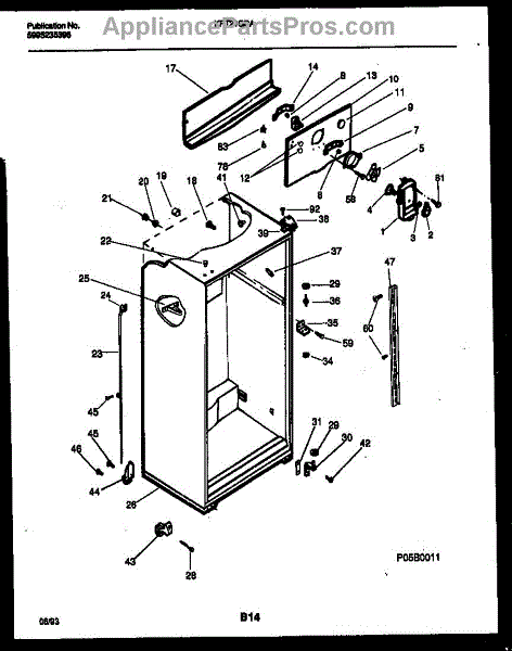 This factory fastener secures appliance panels and components. Replace a missing, stripped, or corroded screw to restore a tight, rattle-free fit and keep brackets and covers properly aligned.