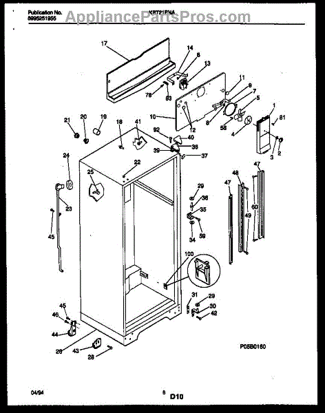 Parts for Frigidaire KRT21PNAD0: 04 - Cabinet Parts