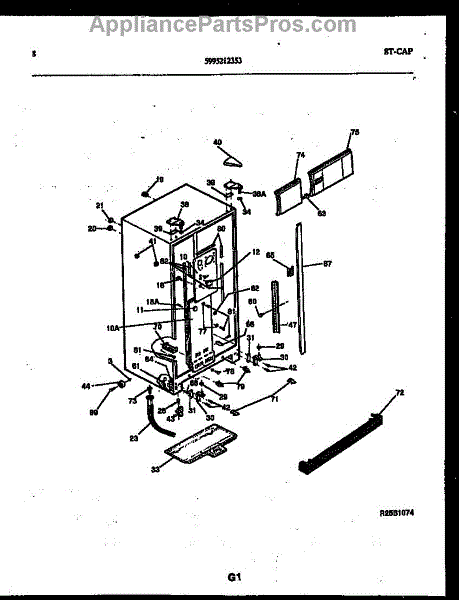 This factory fastener secures appliance panels and components. Replace a missing, stripped, or corroded screw to restore a tight, rattle-free fit and keep brackets and covers properly aligned.