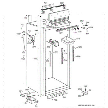 Fresh food side hinge cover.