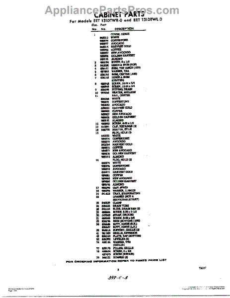 Parts for Whirlpool EET131DTWR0: 03 - Cabinet Parts