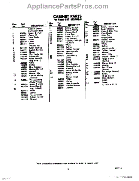 Parts for Whirlpool EHT181ZKWR0: 05 - Cabinet Parts