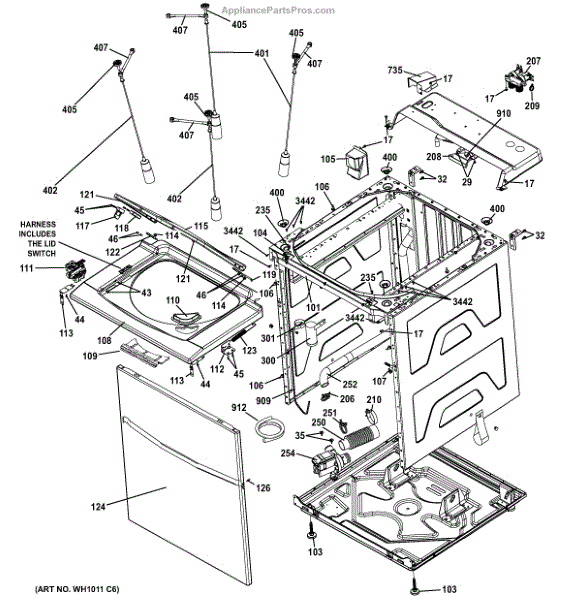 This rear rod assembly supports and stabilizes the dryer drum so it spins smoothly and stays aligned. Replacing a worn or bent rear rod restores proper drum tracking and reduces rubbing, noise, and vibration. What it does
