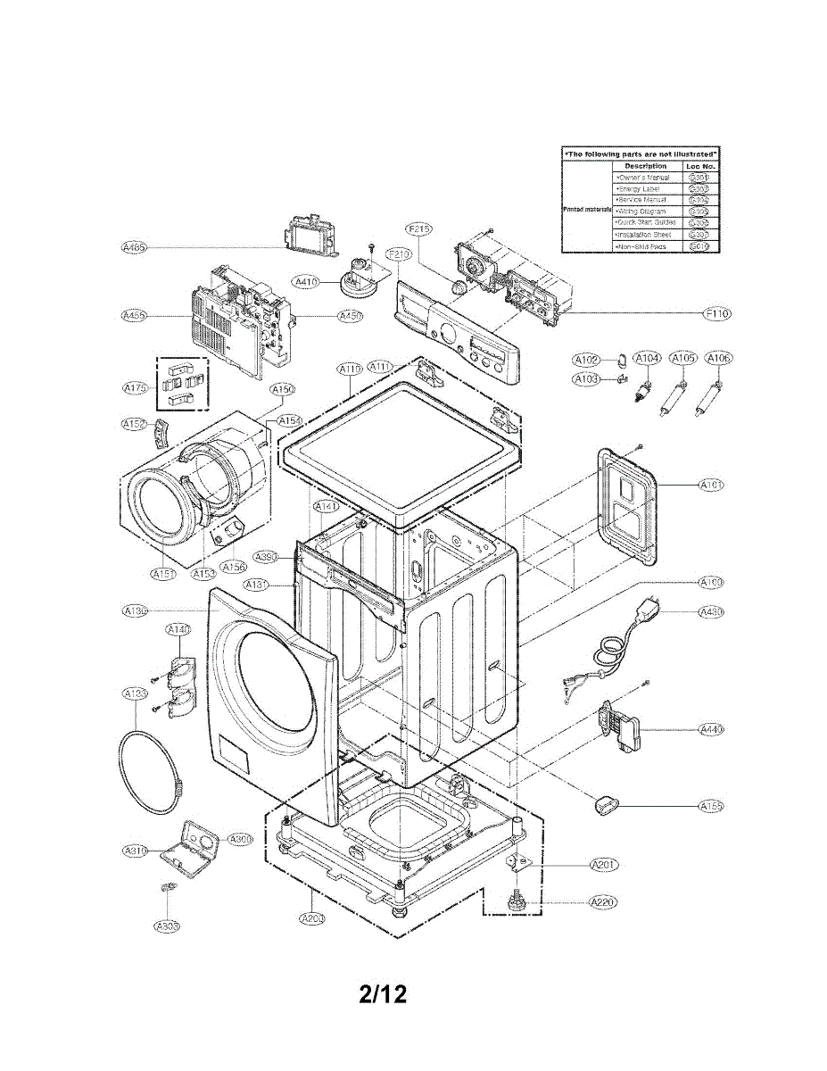 Cabinet base assembly for washers. Replaces cracked, rusted, or corroded base frames. Installs at bottom of washer cabinet to support unit weight.