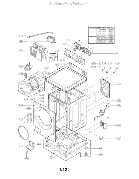 Cabinet base assembly for washers. Supports and encloses internal components at the bottom of the unit. Replace if cracked, rusted, or damaged.
