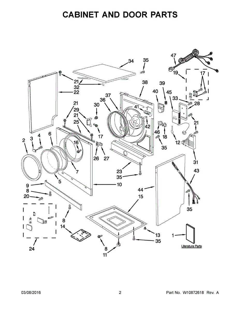 Replacement dryer end cap cover that installs on the exterior cabinet. Needed when original cover is cracked, broken, or missing to complete appearance.