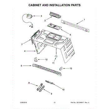 The Upper Cabinet Template is an OEM part for Whirlpool microwaves. This template is used during the installation of the microwave to ensure correct placement and alignment within the upper cabinet, providing guidance for drilling holes and securing the microwave in place.