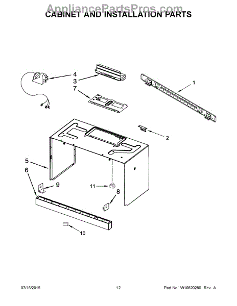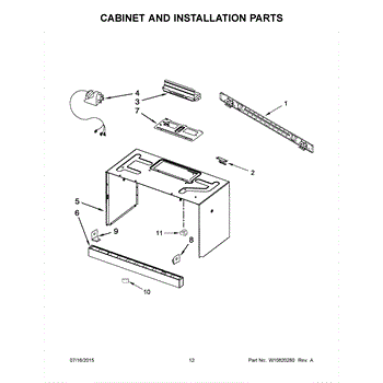 The Upper Cabinet Template is an OEM part for Whirlpool microwaves. This template is used during the installation of the microwave to ensure correct placement and alignment within the upper cabinet, providing guidance for drilling holes and securing the microwave in place.