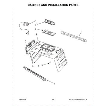 The Upper Cabinet Template is an OEM part for Whirlpool microwaves. This template is used during the installation of the microwave to ensure correct placement and alignment within the upper cabinet, providing guidance for drilling holes and securing the microwave in place.