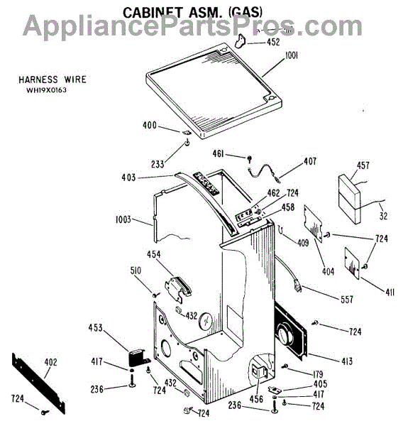 Parts for Ge DDG5380VCL: 03 - Cabinet Asm. (Gas) Parts
