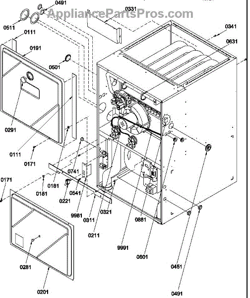 Parts for Amana GCCA045AX30/P1219501F: Cabinet Assembly And Blower Mounting Parts