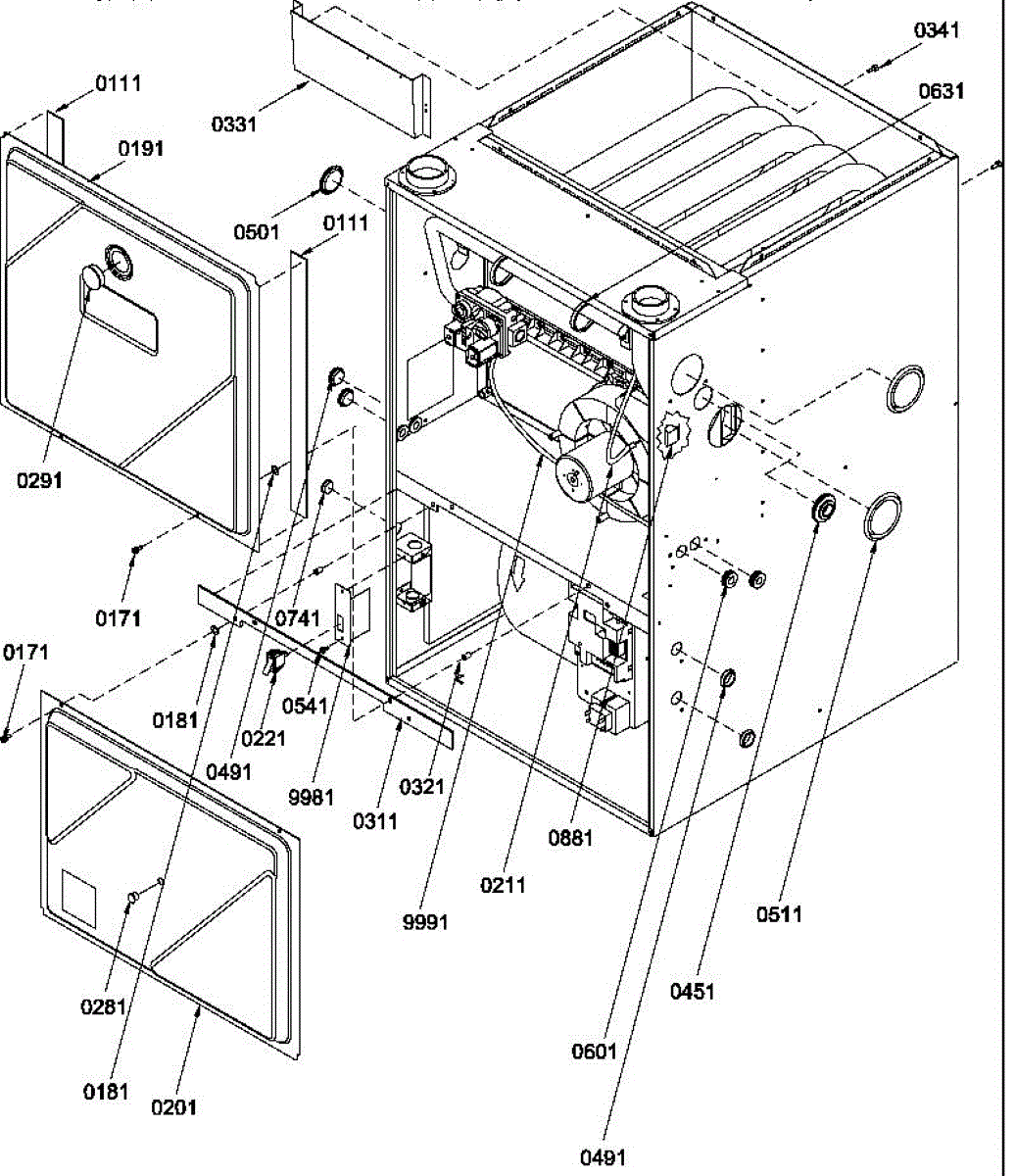 Parts for Amana GUCA070AX30/P1227502F: Cabinet Assembly And Blower Mounting Parts