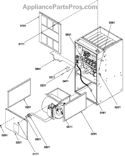 Parts for Amana GUX090X50B/P1213005F: Cabinet Assembly And Blower Mounting Parts