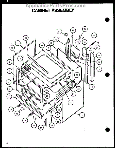 Parts for Caloric RLS343UCO/P1141104NW: Cabinet Assembly Parts