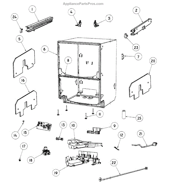 This replace chassis kit restores the dishwasher's chassis support and mounting structure to maintain proper door alignment and stable operation. It helps return panels and components to their designed fit for reliable use. What it does: