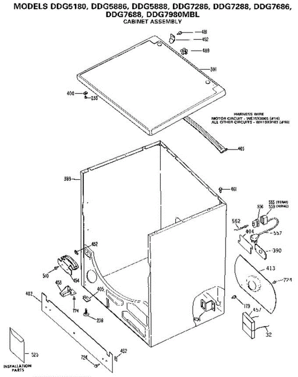 Parts for Ge DDG7286: Cabinet Assembly Parts