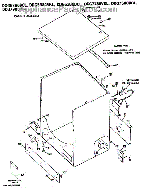Parts for Ge DDG7980BCL: Cabinet Assembly Parts