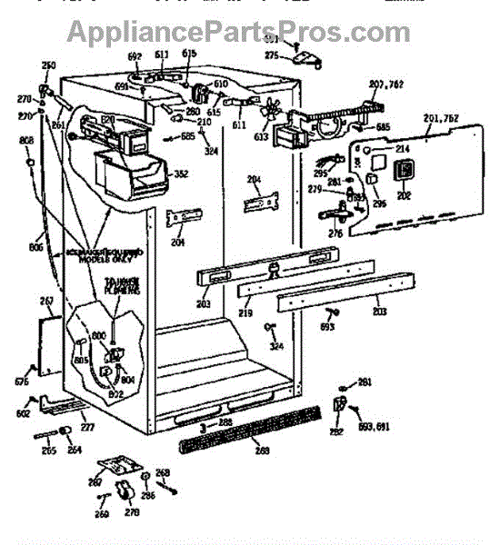 Parts for Ge TBX18DASJRAD: Cabinet Assembly Parts