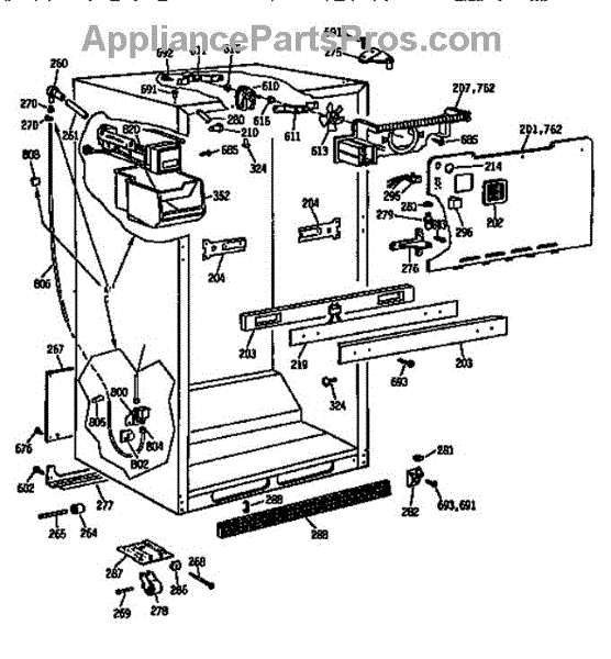 Parts for Ge TBX18DISJRWH: Cabinet Assembly Parts