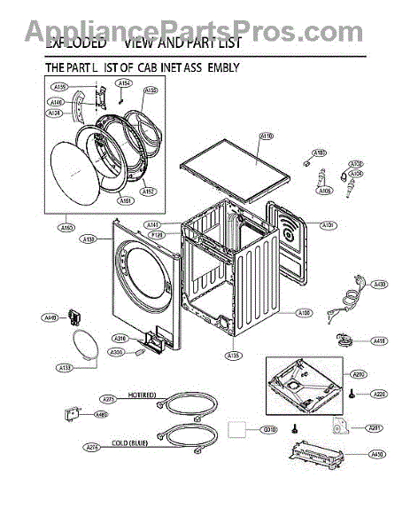 This cabinet assembly replaces a damaged or worn outer cabinet to restore the appliance's structure and appearance. It provides the external housing that supports controls, panels and internal components for safe, stable operation. What it does: