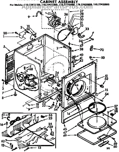 Parts for Sears 11077432800: Cabinet Assembly Parts